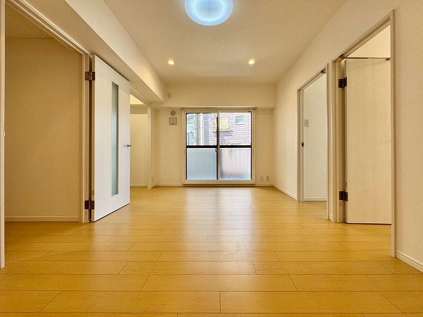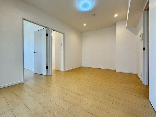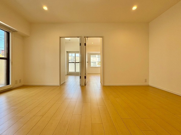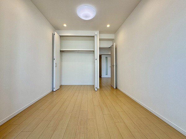 洋室は約7.3帖と5.0帖の2部屋でどちらも大きな窓を備えた明るい空間。生活動線はメインルームを必ず通る設計のため、ご家族の気配を程よく感じながら日々の暮らしが送れます。個々のプライベート空間を確保しつつ自然に繋がる間取りは安心感がありますね♩