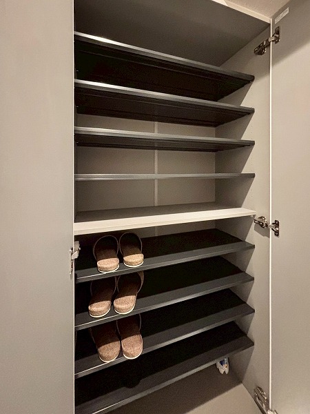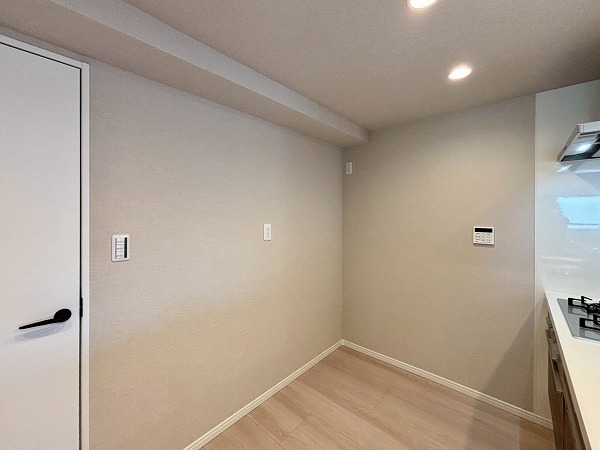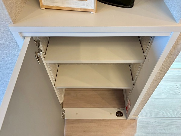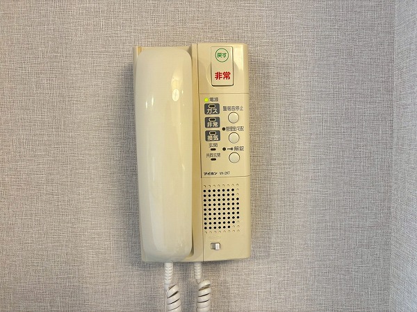 メインルームにはこちらの収納が設けられています。カウンターにお花やお写真を飾れば、お部屋の雰囲気がパッと明るくなりますよ。ペットに触られたくないものは収納にしまっておくのが良さそうですね。インターホンはモニターがないタイプでした。お好みでモニター付きのものに交換するのもオススメ。