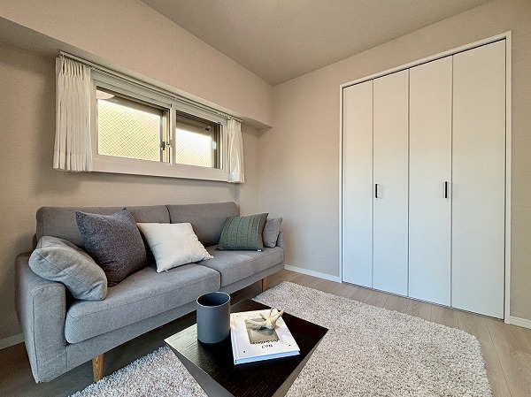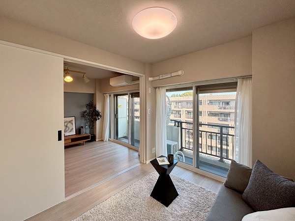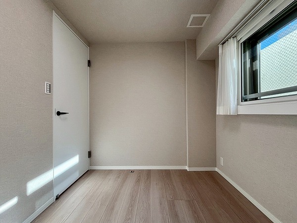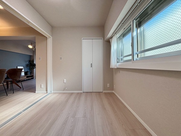 およそ5.2帖の洋室と、およそ4.5帖・およそ3.7帖のサービスルームが設けられています。用途に合わせてお部屋を選べますね。こちらの洋室は2面採光になっていて、通気性ばっちりです🎵メインルームとは引き戸で区切られているので、普段は戸を開けて空間を広く見せることも可能。