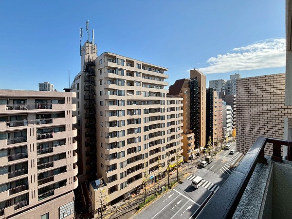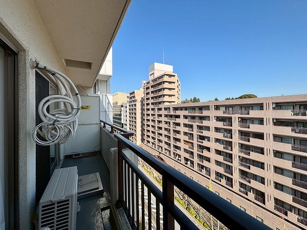 メインルームと洋室から出入りできる北東向きのバルコニー。5.90㎡とコンパクトですが、横に長く解放感がありました。ただ幅が狭い箇所があるので、お布団やシーツなどの大きなお洗濯物はバスルームの浴室換気乾燥機で部屋干しするのが良さそうですね。