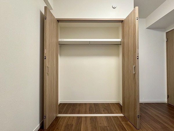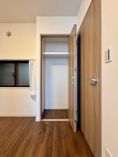 もう一方の洋室は約5.2帖。大容量のクローゼットを完備しており、衣類や荷物をしっかりしまうことができます。ハンガーパイプが備え付けられているので、丈の長いワンピースなどもシワにならずに収納可能です。