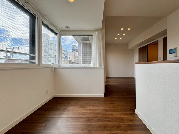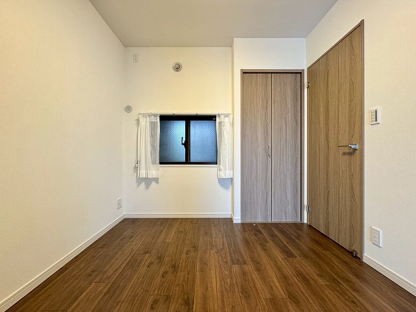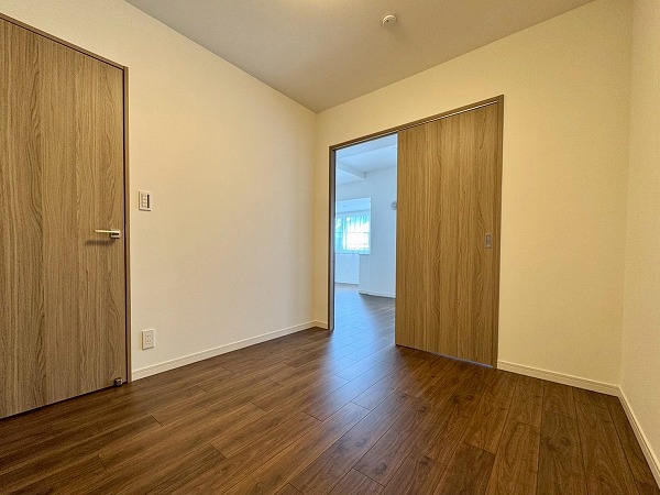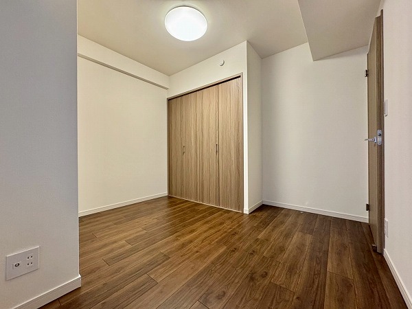 こちらの洋室は約4.7帖ほど。少々小さめな造りですが、仕事部屋にぴったりです。廊下からリビングへ通り抜けられるようになっており日常生活に快適な動線をもたらします。また、コンパクトでありながらもクローゼットを備えているのでお荷物の多い方でも安心。