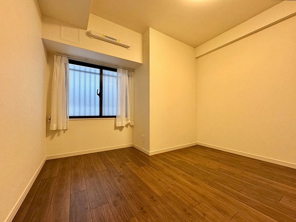 2つある洋室はそれぞれメインルームを経由して入ります。こちらは1番奥にある洋室です。コンパクトなサイズですが、大きな窓があることで実寸より広く感じられますね♪2ヶ所にクローゼットが設けられているため、お洋服の収納に困ることはないでしょう♥