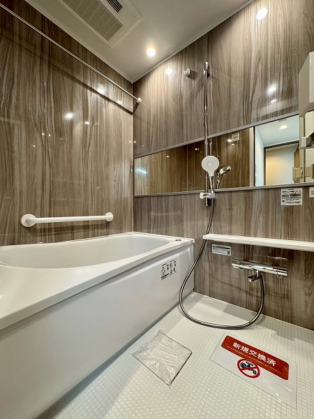 浴室は木目調のパネルを採用し、爽やかな癒しの空間に。ワイドミラーが奥行きを演出し、視覚的にも広さを感じられます。さらに、ゆとりのある浴槽には追い焚き機能を完備。好きな時間に快適なバスタイムを楽しめます♡