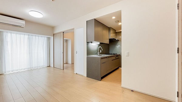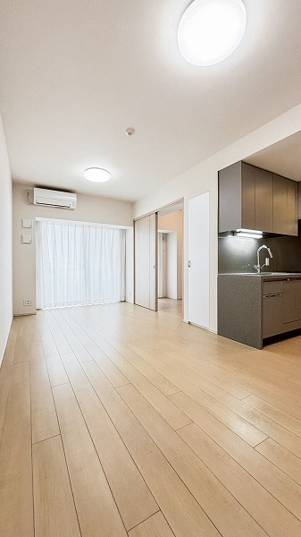 今回ご紹介するのは6階南向きに位置する2LDKで専有面積58.95㎡の住まい。室内は2025年9月にリノベーション済みで、洗練された空気感が漂います。ペットと一緒に過ごせる空間は、家族の一員も心地よく過ごせる嬉しいポイント。さらにアフターサービス保証が付いているため、安心感と快適さも◎