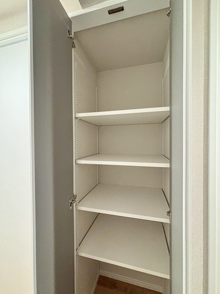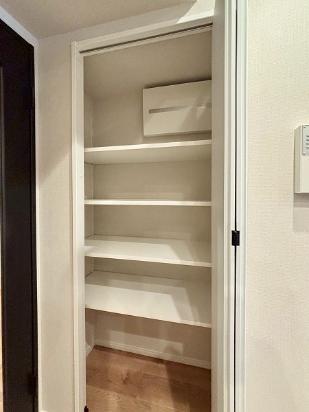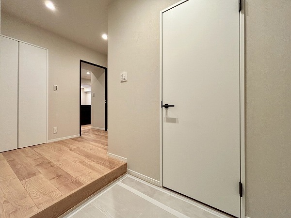 玄関は土間が広く、ゆったりした造りになっています。特に印象に残ったのは、こちらのシューズインクローゼット。廊下側と土間側にドアがあるウォークスルー仕様なので、靴を選んだらそのまま履いてお出かけできますよ♪ちょっとした手間も省けると助かりますね。ちなみに廊下にも大きな収納を備えています。