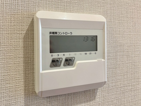 リビングダイニングキッチンはおよそ18.1帖の広々空間。これだけスペースがあれば、自由にレイアウトが考えられますね。壁面にはピクチャーレールをご用意。お部屋自体がシンプルなデザインなので、カラフルなアートを飾っても良さそうです。エアコンと床暖房を完備しており、オールシーズン快適◎