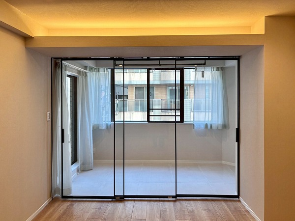 メインルームと間仕切りで区切られているこちらのスペースは…およそ4.1帖のサンルーム。窓が多く、通気性ばっちりです!南からの光がしっかり入るので、部屋干しに便利ですよね。ヨガやストレッチをこちらのスペースでするのも良いかもしれません。