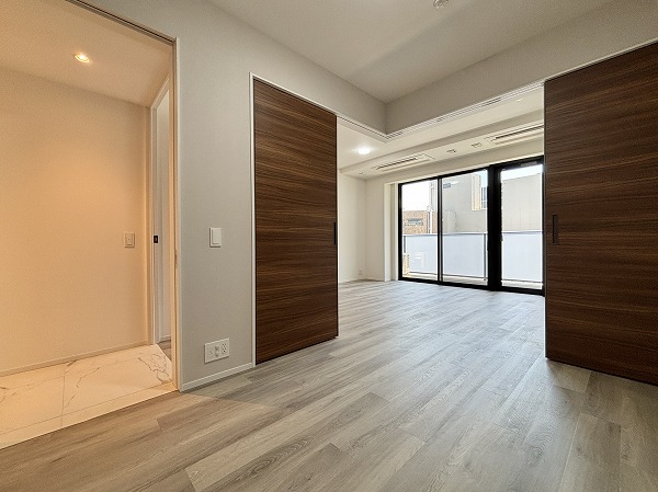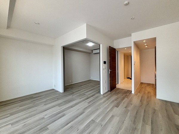 洋室は約5.1帖の広さ。窓はありませんがメインルームとの引き戸を開ければ、自然光が柔らかく差し込み、明るさを感じられます。さらにメインルーム側と廊下側の2方向にドアがあり、回り道せずに出入りできる動線の良さもポイント✦