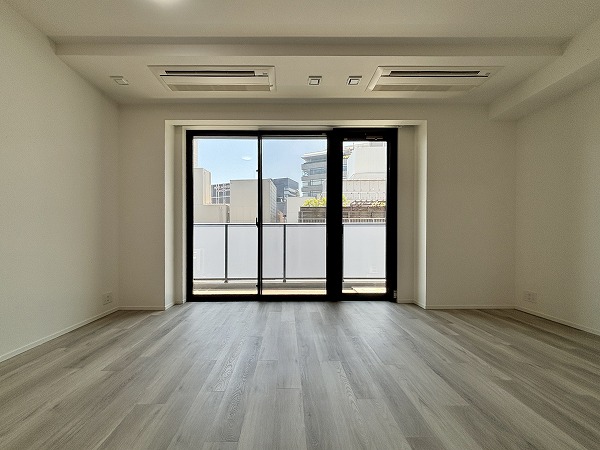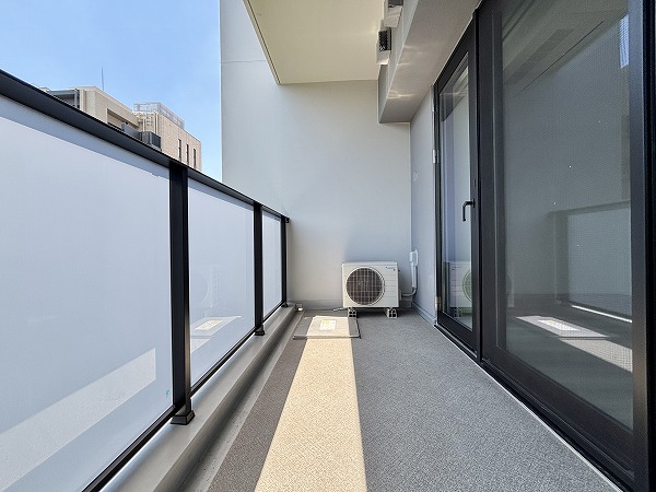 メインルームから出入りできるバルコニーは8.92㎡のゆとりある広さ。横に長い造りで、チェアやテーブルを置けば朝のコーヒーや夕方のくつろぎも楽しめますね。バルコニーは住宅街に面していますが、向かいの建物との距離が十分あるため、南向きの光が遮られることなく降り注ぎます☀