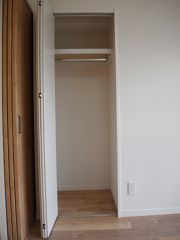 小さいながらも天井までの高さのある収納がついているので洋服以外にも高さのある荷物も収納できそうです♪