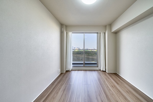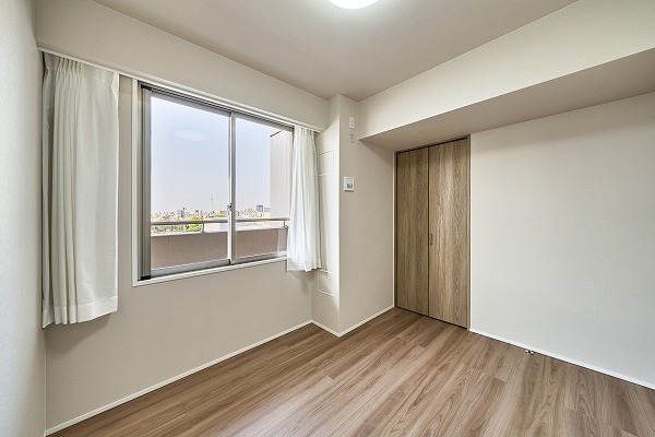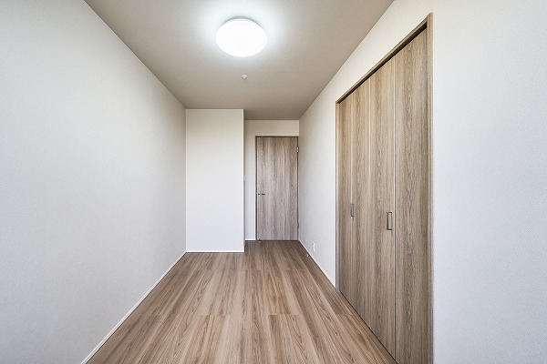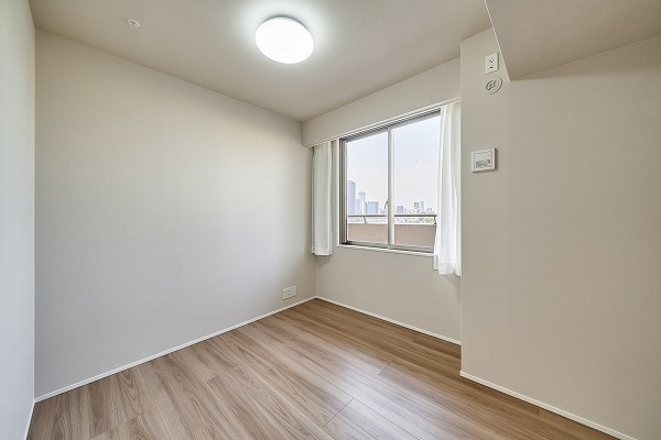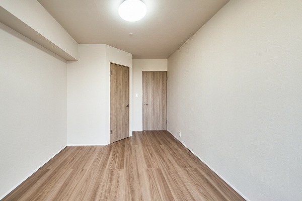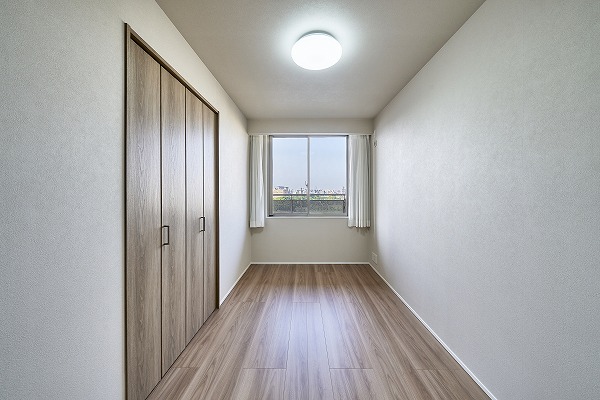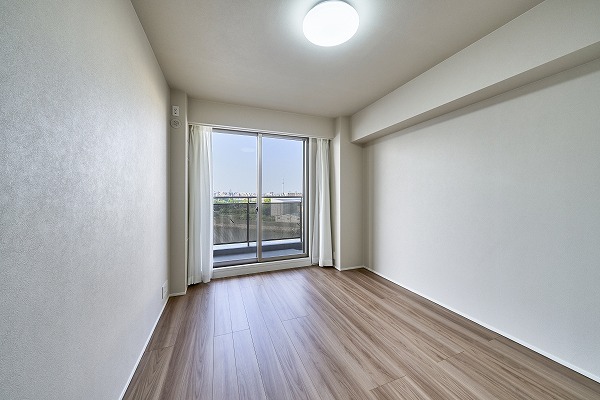 すっきりとした形状の約5.5帖洋室は家具配置がしやすい実用的な空間。余計な凹凸がないため、空間を無駄なく使えます。シンプルな内装デザインが好みのインテリアを引き立ててくれるので、お子様部屋やゲストルームとしてもおすすめ。