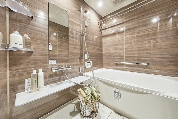 上質な木目調デザインが落ち着きを演出するバスルームは、リラックス感を大切にした空間設計。新規交換されたばかりの設備で、清潔感あふれる仕上がりです。追い焚き機能を備えているため、家族それぞれの入浴時間にも柔軟に対応。洗い場はカウンター付きで、日常使いの快適さもバッチリ♪