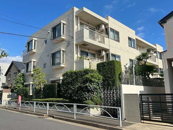 閑静な住宅街に佇む3階建てマンション、こちらが『東急ドエルアルス碑文谷』です。総戸数は24戸。