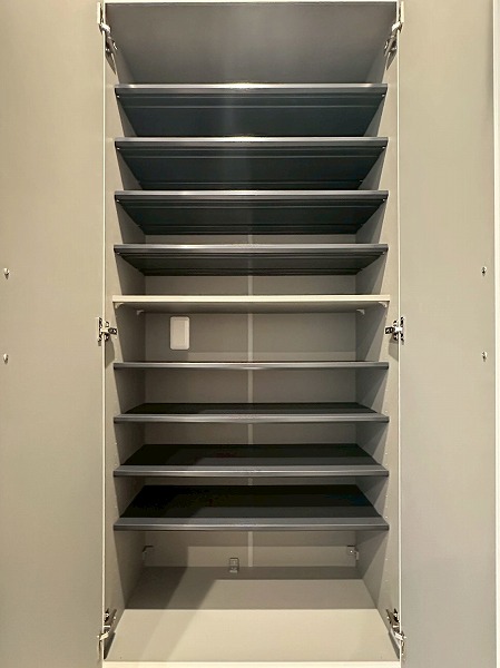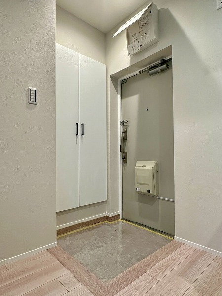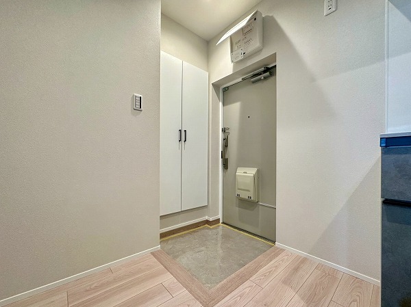 玄関にはトールタイプのシューズボックスが備わっています。玄関からリビングへの段差が少なくフラットな印象。全居室のフローリングは貼り替えられ、隅々までピカピカです。