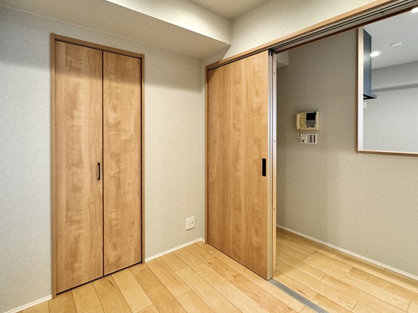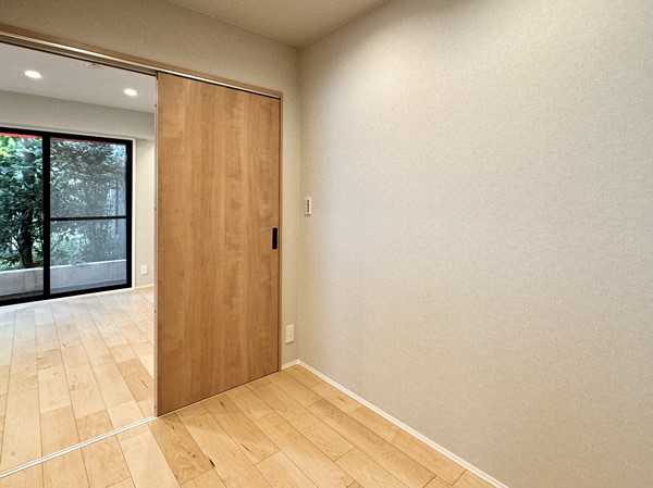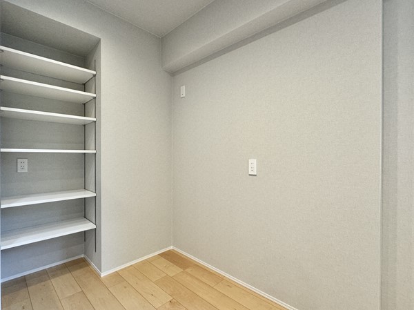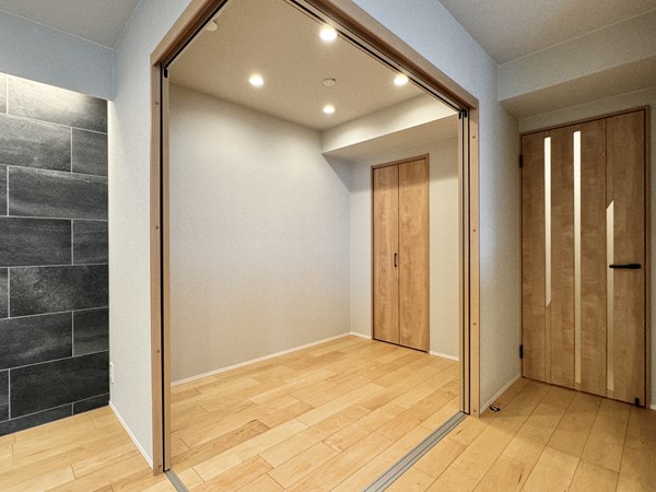 こちらはメインルームと隣接する洋室。入口は大きくL字に開く引き戸となっていました。約3帖ほどの広さとなっており、書斎やストレージルームとしてご利用されるのにピッタリです。
