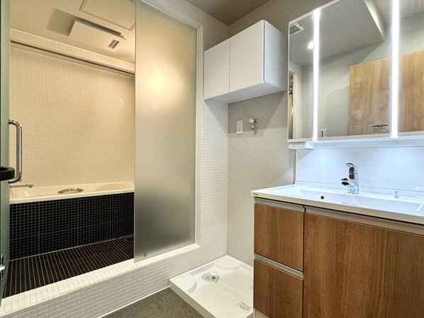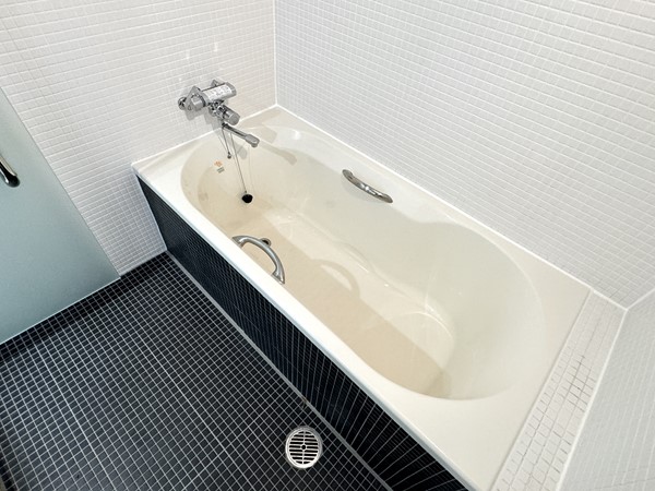 水回りの設備のほとんどは今回のリノベーションで新規交換されましたが、お洒落なタイル貼り浴室だけは以前のまま活用されているようでした。やや使用感はあるものの、充分そのままご利用いただけそうです。