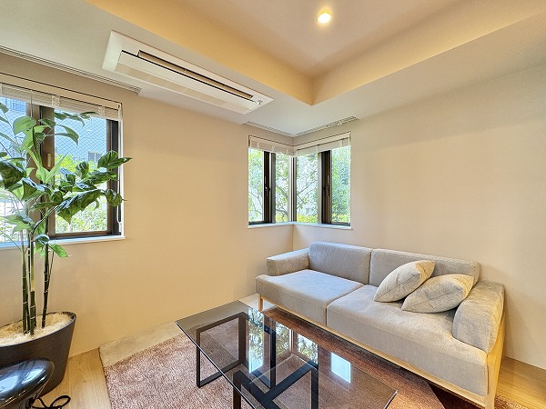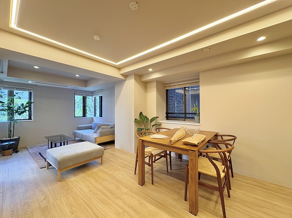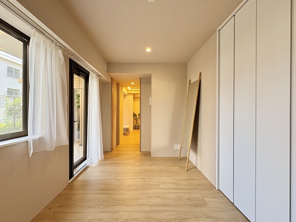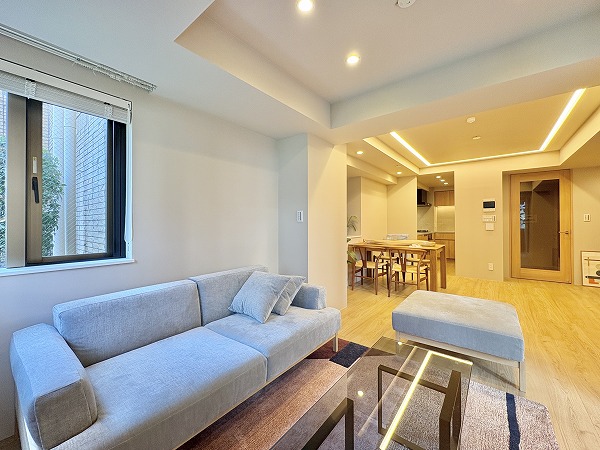 恵比寿と目黒。その2つの人気エリアを結ぶ穏やかな住宅街に、静かに佇む『ファミールグラン恵比寿』。都心の利便性をしっかりと享受しながら、喧騒とは一歩距離を置いた落ち着いた暮らしが叶う、贅沢な立地です。今回ご紹介したのは2階のお部屋。階下に住戸がないため生活音を気にせずのびのびと過ごせるのも大きな魅力です。玄関扉を開けた瞬間、ふんわりと木のぬくもりを感じる柔らかな空気。まっすぐで主張しすぎるカラーは使わず淡く優しいトーンでまとめられた空間は、自然と深呼吸したくなるような心地よさがありました。そして特筆したいのが、リビング・洋室どちらからも出入りできるテラスと専用庭。朝はカーテンを開けてそのまま外へ。季節の草花を育てたり、椅子を置いて読書を楽しんだり…そんな豊かな時間がすぐ手の届くところにあります。ペットと暮らせる2LDK。自然を感じながら、都心でスマートに暮らしたい方にぴったりの住まいです。ぜひ一度、現地でこの心地よさをご体感くださいね❀ ライター:mao【25K06】