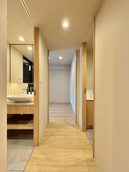 内廊下の床は常に丁寧に清掃され、艶やかな仕上がり。手入れの行き届いた空間は、管理体制の良さと住まう方への心配りを物語っています♩