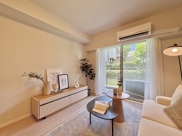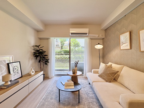 ご家族で暮らす新居におすすめな3LDKのお部屋です!リビングダイニングキッチンが約14帖、各洋室が広い方からおおよそ7帖、6.5帖、4.3帖と居室のゆとりをしっかり確保してあるのがポイント◎内装はベージュや淡いグレーのアクセントクロスを取り入れて、ほんわかと優しいナチュラルな仕上がりに。動線良好なL字キッチンはシンクがリビングダイニングの方を向いた対面型で、小さなお子様がいらっしゃる方も家事がしやすそうだと思いました。1階住戸だとプライバシーが心配ですが、バルコニーが公道に面していないためその点はご安心ください!アクセス面で魅力的なのは、エントランスの目の前にバス停があること。目黒駅と中目黒駅に向かうバスが出ているので、悪天候時でもストレスなく移動できそうです♪ご内見希望などぜひお気軽にお問合せください。 撮影・ライター:yuki【25I07】