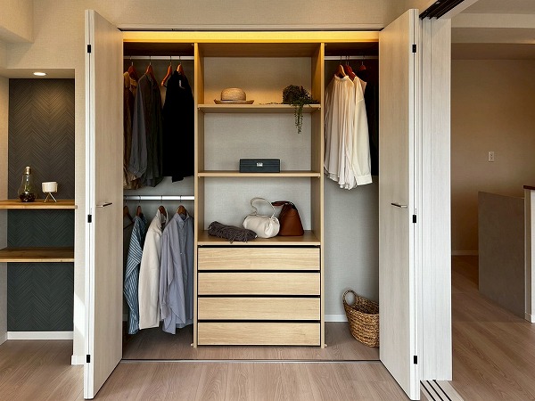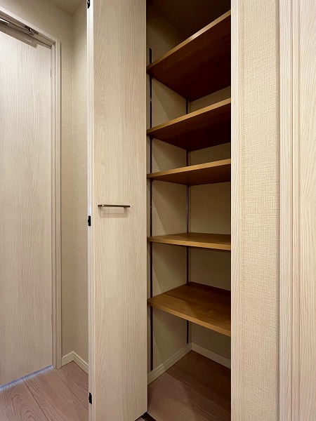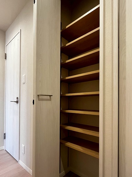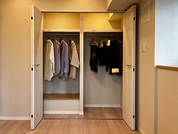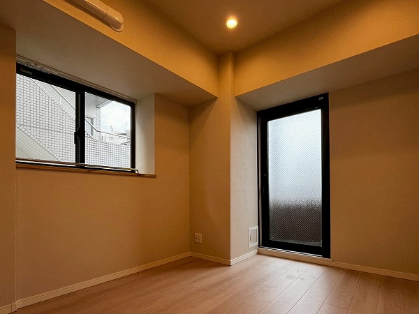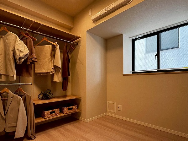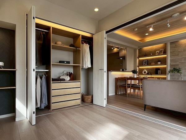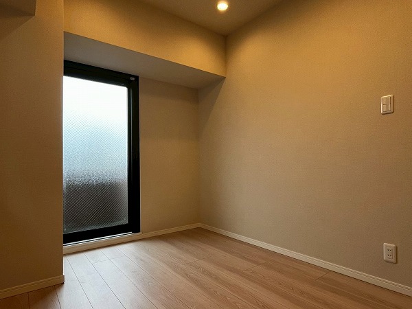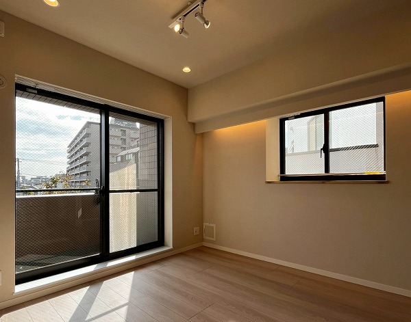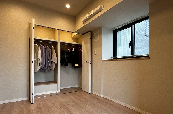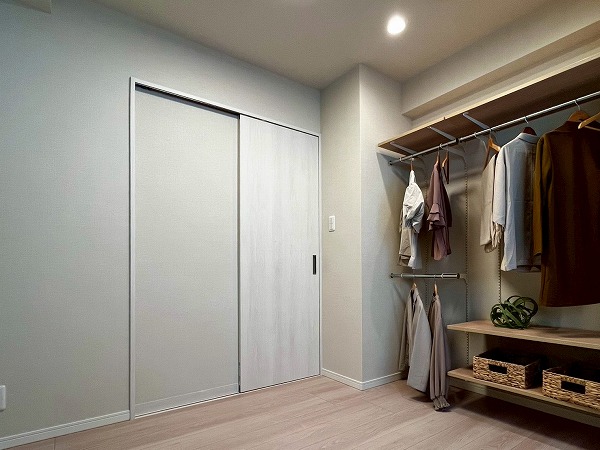 こちらの洋室は約5.7帖で、まるでショールームのような収納がついています。2面採光で明るさが確保されたお部屋は、メインルームの横にある引き戸を開け閉めすることで、空間の使い方にバリエーションを持たせることが可能。他の2つの洋室にも収納を完備しています◎