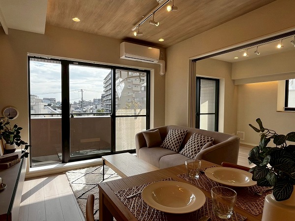『モナーク碑文谷』は、都立大学駅から徒歩7分、ファミリーにぴったりな3LDKの新規フルリノベーション物件です。お部屋に入ってまず気が付くのは、そのデザイン性の高さ。アクセントクロスの種類はお部屋によって変わり、場所によって使い分けられた照明がこだわりを感じさせます。そして目を引くのが、暖かな光がいっぱいに差し込む南西向きの大きな窓。そんな窓の向こうには、抜群の眺望を望めるバルコニーが待っています。大通りは反対側にあるので、窓を開けても思ったより騒音は感じられませんでした。収納もたっぷりで、玄関周りには靴をしまえる場所が2箇所も。各洋室にクローゼットがあるので、お洋服や趣味のものが多い方でも綺麗にディスプレイできそうです。デザイン性がありながら、実用性も合わせ持つ良いとこ取りの『モナーク碑文谷』で、新たな生活を始めてみませんか。お問い合わせお待ちしております◎ ライター:yurika【25K10】