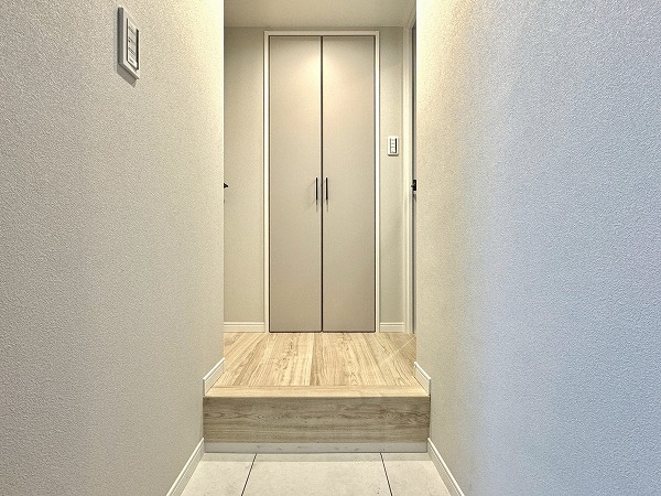 扉を開けた瞬間に目に入る、機能的なシューズクローク。可動棚を採用することで、スニーカーからブーツまで幅広く収納でき、持ち物の多い方にも嬉しい設計です。たっぷりとした収納力が、玄関を“置かない空間”へと変えてくれますよ。