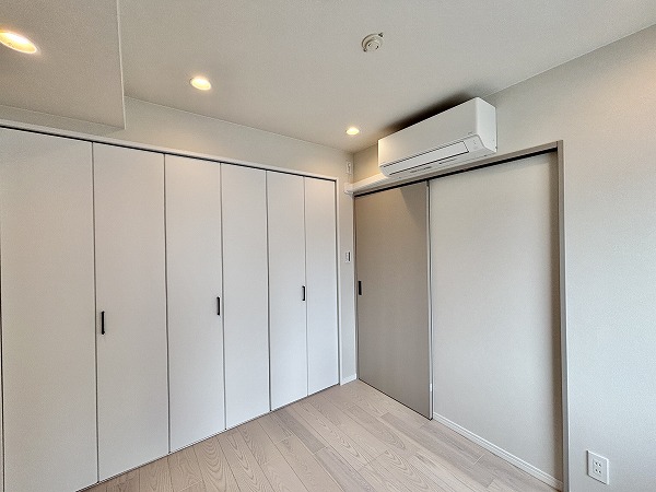 洋室はリビングダイニングキッチンとスライドドアで区切られています。3.12帖ほどの広さなので、背の高い方や体の大きい方は少し狭いと感じるかもしれません。ドアを開けてワンルームとして利用するのがオススメですよ◎大きなクローゼットがあり、オフシーズンのお洋服もスッキリ整頓できそうですね🌷