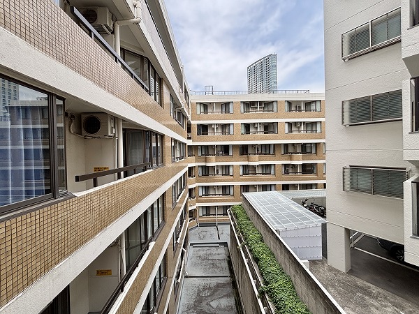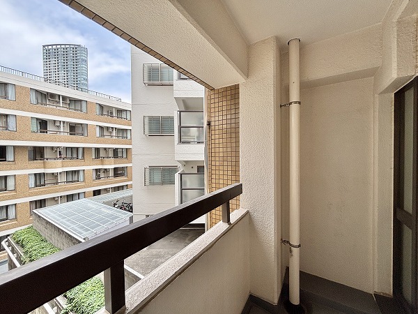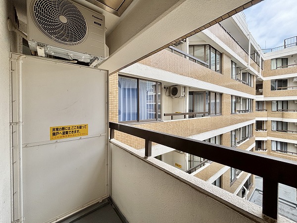 キッチンの背面から出られる北向きのバルコニーは、約3.3㎡のコンパクトなスペース。お洗濯物を干すだけでなく観葉植物を置いたり朝のコーヒーを楽しんだりと、ちょっとした屋外時間にも活用できます。通りから奥まった位置にあるため外からの視線も気にならず防犯面でも安心。