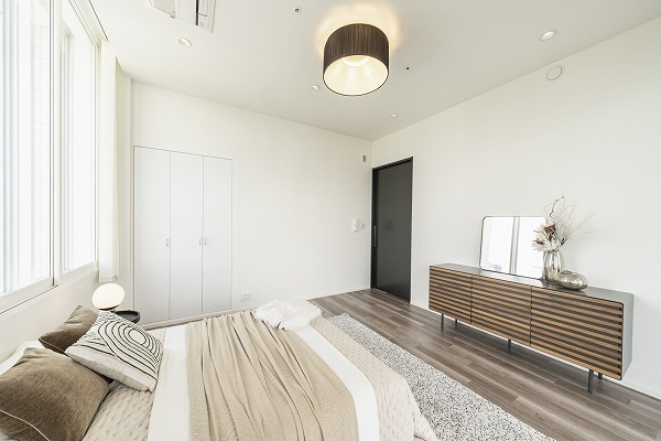 ルーフバルコニーとつながる約11.9帖の洋室。陽光と爽やかな風が入り込むため、ベッドルームとして使用したら気持ちの良い目覚めができそうです♪屋外との連続性を感じることで、開放感あふれるプライベート空間になります。