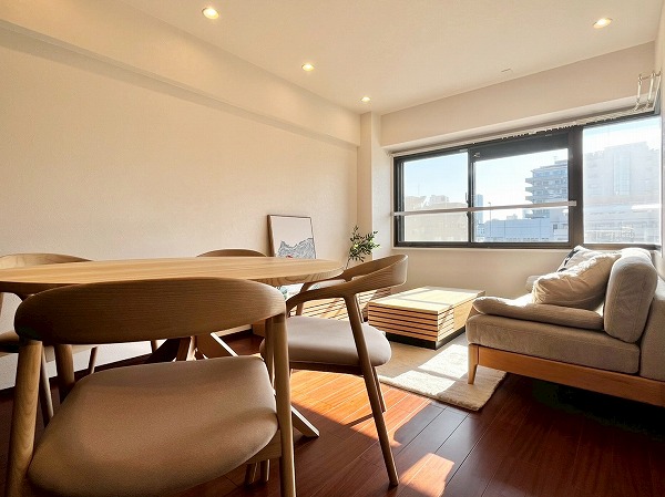 今回ご紹介するのは、マンションの5階部分に位置する2LDK+WICのお部屋。窓は南を向いており、暖かな日差しがお部屋を奥まで照らしてくれます。空が広く見える窓のおかげで視線が外に向き、開放感たっぷりです。
