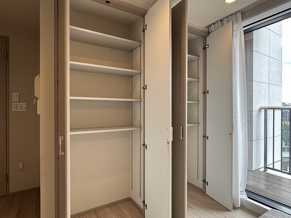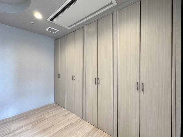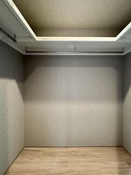 もう1つの洋室は約7.7帖。壁一面に設けられたクローゼットは収納力が高く、衣類や荷物が多い方でも安心です。用途別に整理しやすく、居室をすっきり広く使えます。バルコニーに直接出られる点も魅力のひとつ。
