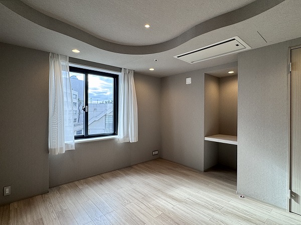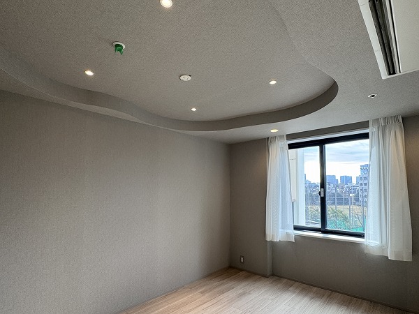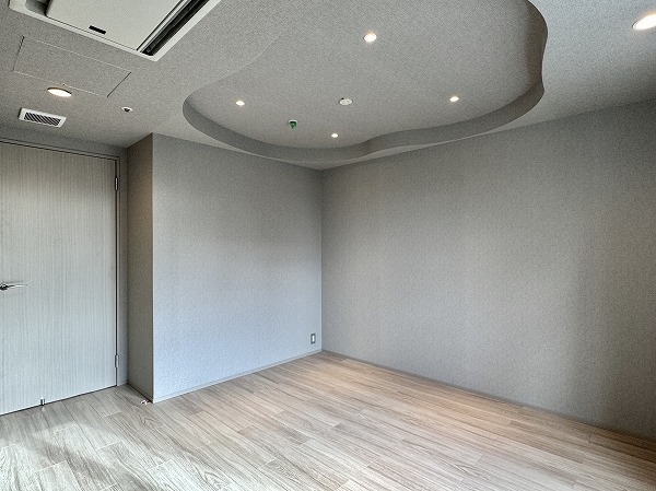 メインルームと洋室には、丸みを帯びた折り上げ天井を採用。間接照明がやわらかく空間を照らし、落ち着きのある雰囲気を演出。主張しすぎないデザインながら、上質感をさりげなくプラスしてくれます。