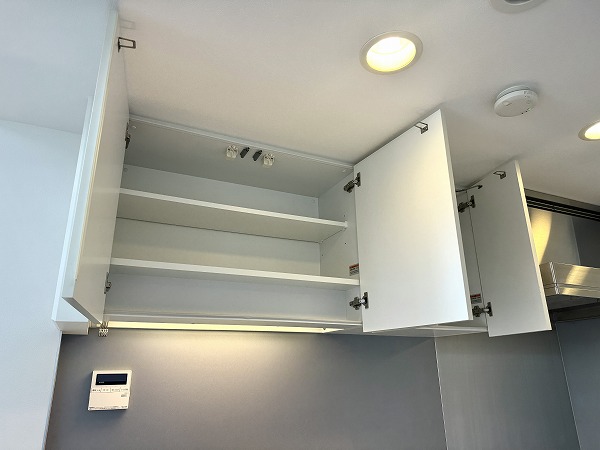 メゾネットならではの吹き抜け空間には、棚板の高さを自在に変えられるオープン収納を設置。お気に入りのアートや雑貨をまるでギャラリーのように飾り、住まいのアクセントとして楽しむことができます。実用性とインテリア性を兼ね備えた、この住戸ならではの特別な空間です。