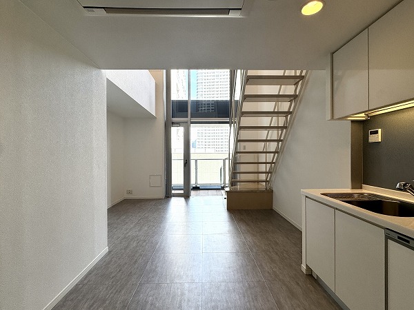 天王洲アイル駅から徒歩7分。さらに、主要都市へ軽快にアクセスできる「品川駅」も徒歩圏という、利便性に優れたロケーションに建つ『ワールドシティタワーズ キャピタルタワー』。広大な敷地内にはスーパーや洋菓子店があり、日々の買い物やちょっとしたご褒美スイーツにも困りません。周辺には緑あふれる公園やローズガーデン、運河沿いの遊歩道が点在し、都心にいながら穏やかな自然を感じることができるのもこのエリアならではの魅力です。ご紹介したのは4階と5階の2フロアにまたがるメゾネットタイプの1LDK。下階にはリビングダイニングキッチンとトイレ、上階には洋室とサニタリールームが配され、生活に心地よいリズムを生み出しています。リビングダイニングは、メゾネットならではの吹き抜け天井が印象的。2層分の高さを誇る大きな窓から柔らかな自然光が降り注ぎ、南向きでなくとも驚くほど明るく開放的でした✧水回りは既存設備を活かした仕様となっており、ところどころに使用感は見られるものの、清潔に保たれており十分に実用的。現地でしか味わえない開放感とデザイン性、ぜひ一度ご自身の目で確かめてみてくださいね。 ライター:mao【25J28】