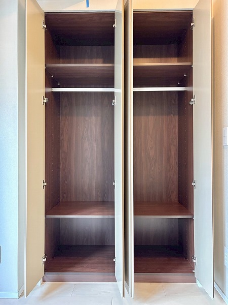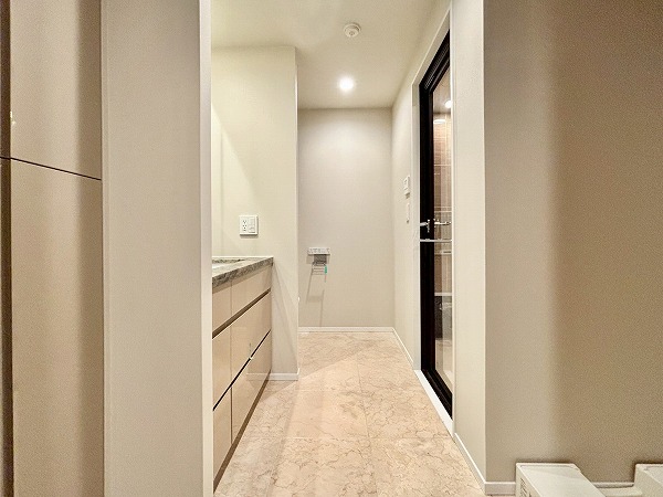 ツーロックドアを開けた先には、大理石調のタイルが敷かれた玄関が現れます。段差が無いフラットな造りになっていて、小さなお子さまやご高齢の方まであらゆる世代の方がお出かけしやすいデザインと言えますね。外国の方にもストレス無くお過ごしいただけそう♡
