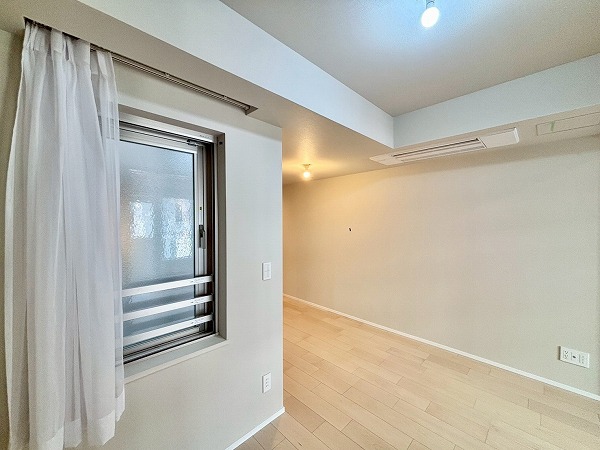 洋室はおよそ4.4帖とちょっぴりコンパクト。ローベッドや低いマットレスを使えば圧迫感を減らして空間を広く見せることができます◎シンプルな色合いなので、どんなテイストの家具にもマッチします!