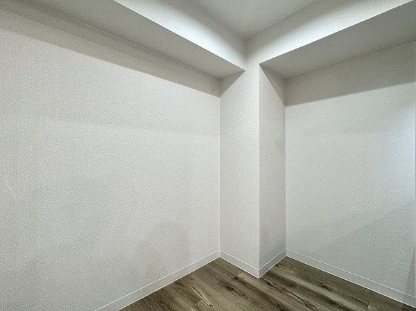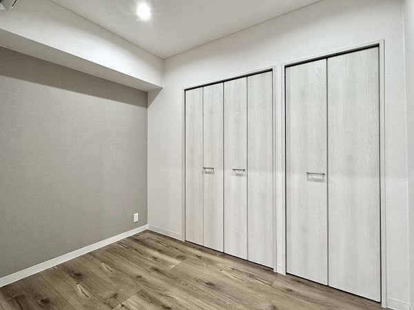 約4帖の洋室は、メインルームとスライドドアでつながる設計。扉を開ければ空間が一体となり、より開放感のある住まいに。閉めればしっかりと独立した落ち着きのある空間となり、寝室やプライベートスペースとしても重宝します。来客時に生活感を隠せるのは助かりますよね。