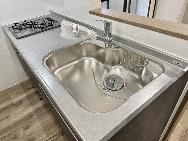 リビングとのつながりを意識した対面キッチンは、開放感と使いやすさを兼ね備えた設計。マットなストーン調デザインが大人っぽさを演出し、生活感が出にくいのもポイントです。グリル付きコンロにより、焼き物から煮込み料理まで幅広く対応可能。料理の時間が自然と楽しくなりそう♪