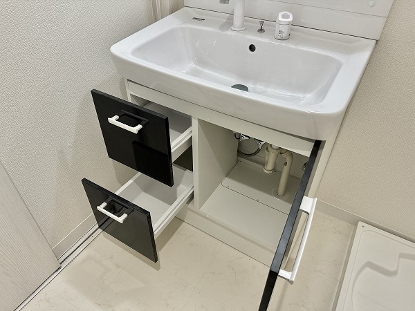 水回りはコンパクトに集約され、使い勝手の良さを重視した設計。必要な設備が無駄なく配置されているため、生活動線がとてもスムーズです。洗面化粧台には収納スペースが備わっており、細かなアイテムもすっきりと収納可能。