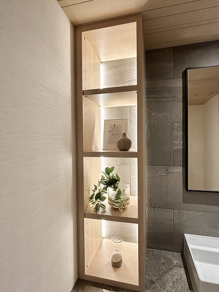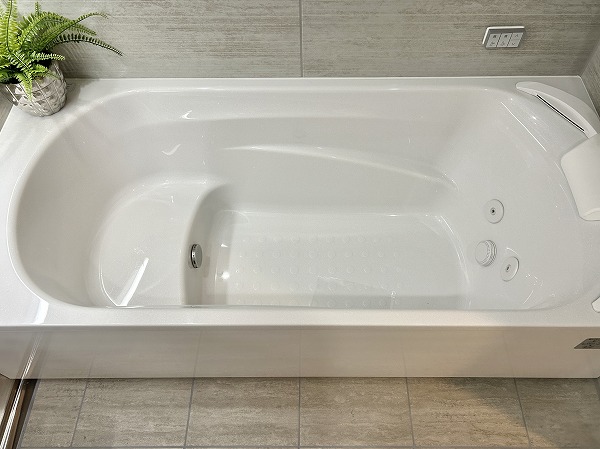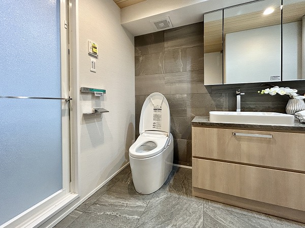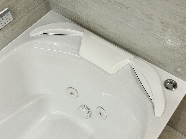 上品なデザインのバスルームは、ご家族と一緒に入れるほどの広々空間。大型バスタブはオートバス、追い焚き、肩楽湯・腰楽湯機能付きでワンランク上の癒しを提供♡浴室換気乾燥機も備え、雨の日や部屋干しにも便利です。