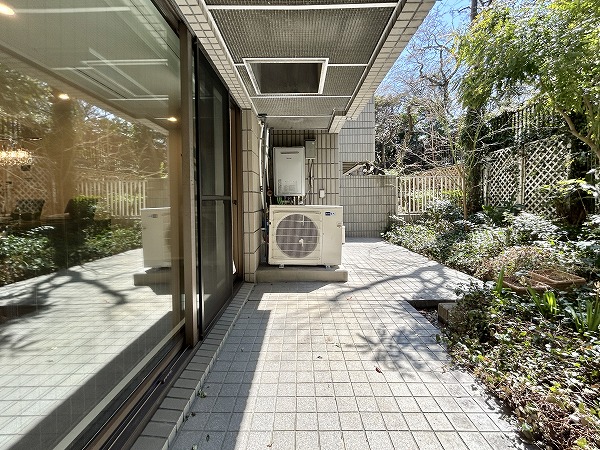 1階ならではの魅力はテラスと専用庭。タイル貼りの広々テラスと緑豊かな庭は塀で囲まれプライバシーも安心。ロッキングチェアを置いて、朝のコーヒータイムや読書、子供用プールなどを楽しむのも素敵ですね✿