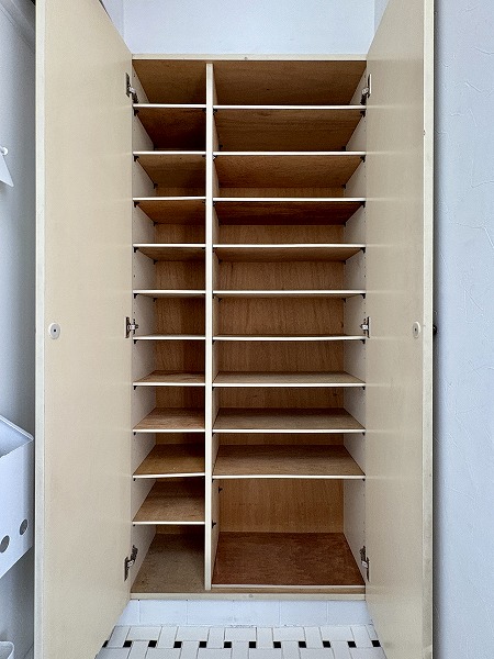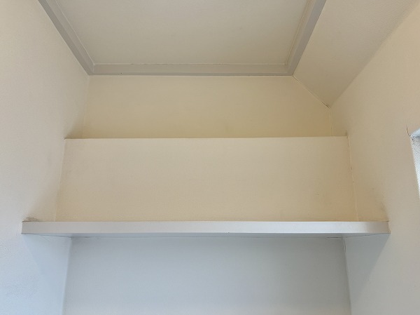 オープンクローゼットにはハンガーパイプと枕棚を完備。衣類や小物をすっきり収納できます。上部にはカーテンレールもあり、カーテンを付ければ目隠し可能。収納とプライバシーを両立できる便利な設備です。