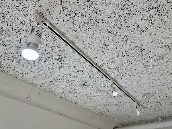天井には塗装仕上げデザインを採用し、空間に落ち着いた高級感を演出。スポットライトは角度調整が可能で、お部屋全体を柔らかく照らしたり、部分的に照明を当てたり自由自在です。ライティング次第で雰囲気を変えられるのも嬉しいポイント。