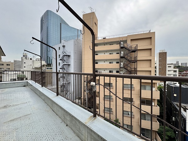 L字型のルーフバルコニーは南・東・西の3方向に広がり、太陽の光を存分に浴びられます。ゆったりとした広さで洗濯物もたっぷり干せ、すぐ乾きそう♪チェアを置けば外気浴や読書なども楽しめる開放的な空間です。