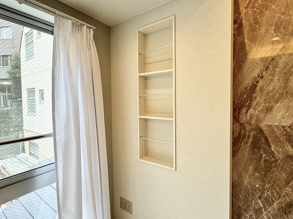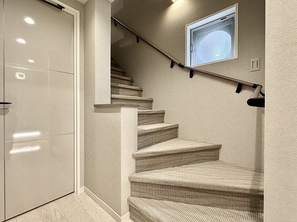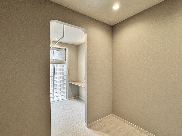 今回ご紹介したのは『セボン高輪』のメゾネットタイプのお部屋。ルーフテラス付きの3階建てで、3~4人家族にぴったりの3LDKです。玄関の扉を開けると、淡いグレーに包まれた上品で洗練された空間が広がり、自然と期待が高まります。特に印象的だったのは、1階の洋室にあるデスクスペース。ブロックガラス越しに柔らかな光が差し込み、居心地の良さを感じる空間には、横幅の広い作り付けデスクが備わっています。天井にはシンプルなハンガーパイプも取り付けられており、収納やワークスペースとしても活用できるのが嬉しいポイント。入口の緩やかなアーチも、なんとも上品で温かみがあります。階段は絨毯貼りで足触りが優しく、屋上の広々としたルーフテラスでは、家族でピクニックやガーデニングも楽しめそう❀リビングやキッチン、サニタリーまで、ひとつひとつの空間に“暮らしの心地よさ”が考えられていて、実際に訪れると想像以上の快適さを体感できます。ぜひ一度、現地にてご確認くださいね♩ 撮影・ライター:mao【25J21】
