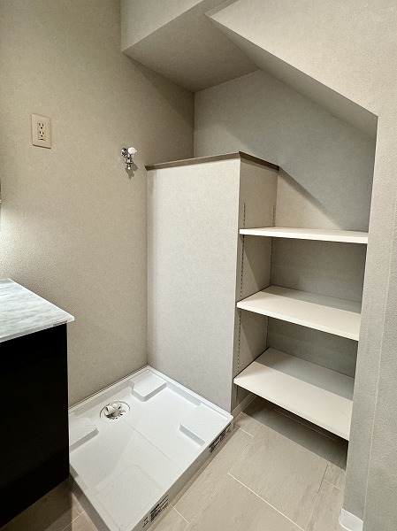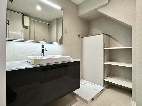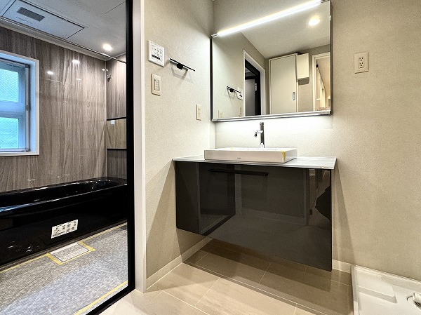 • 洗面化粧台・洗濯機置き場・バスルームがひとつにまとまったサニタリールームは、朝の支度も家事もスムーズ。バスルームはデザイン性が高く、自然とバスタイムが楽しみに✦浴室乾燥や追い焚き機能も備わり、忙しい毎日をしっかりサポートしてくれますよ。