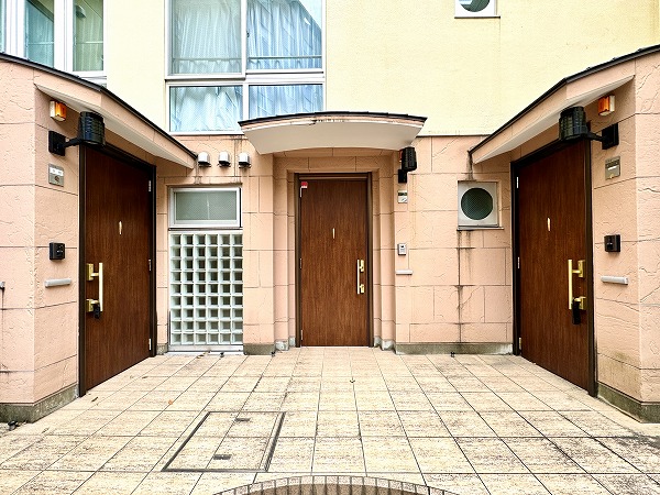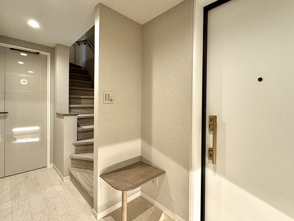 玄関へと続くゆったりとしたアプローチは、外からの視線をさりげなく遮り、プライバシーに配慮された設計。戸建てのような独立感を感じながら、マンションならではの安心感も享受できる、まさに“いいとこ取り”の住まいです。