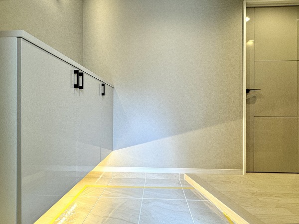 • お部屋の第一印象を決める玄関は、ナチュラルな温もりと上品さが調和した空間。扉を開けた瞬間から、これからの暮らしへのワクワク感が広がります。カウンターには季節のお花や小物を飾れば、訪れる人を優しく迎え入れる空間に仕上がりますよ❀