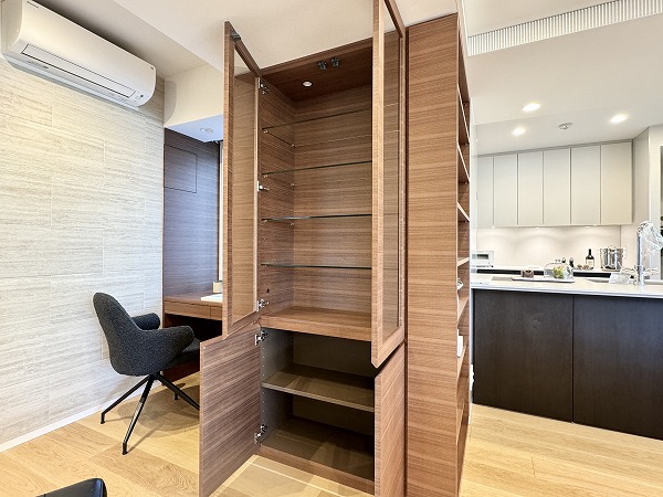 今回ご紹介したのは『パークレ・ジェイド白金レジデンス』3階に位置する1室。このお部屋の最大の魅力は、何と言っても約34.4帖という圧倒的な広さを誇るメインルーム!大きく取られた窓からは安定した光が差し込み、視線が奥へと抜けることで実際の帖数以上に開放感を感じさせてくれます。北向き住戸のため強い直射日光による家具やフローリングの日焼けを抑えやすい点も、長く美しい住空間を保ちたい方には嬉しいポイント。LDKの一角には造作のカウンターデスクを設置。ワークスペースとしての利用はもちろん、お気に入りのアートや雑貨を並べるディスプレイスペースとしても活躍しそうでした◎随所に設けられた収納は見せる収納と隠す収納をバランス良く配置しており、生活感を抑えた洗練された空間作りが可能です。また、ゆとりあるコの字型キッチンもこの住戸ならでは。作業動線が短く、複数人での調理にも余裕があります。対面側はフラットなカウンター仕様となっており、椅子を添えれば軽食や会話を楽しむ場としても利用可能。住まうほどに心地よさを実感できる上質な暮らしが叶う1室です。ぜひ現地で、この空間の魅力をご体感ください♪ ライター:hana【26A05】